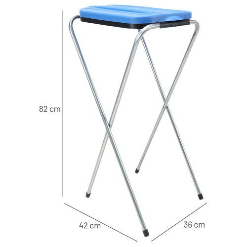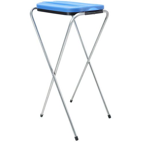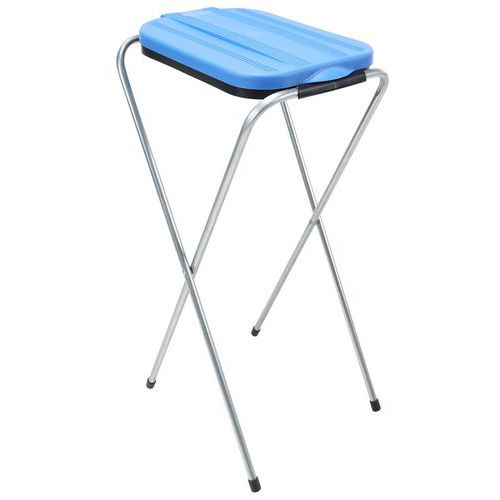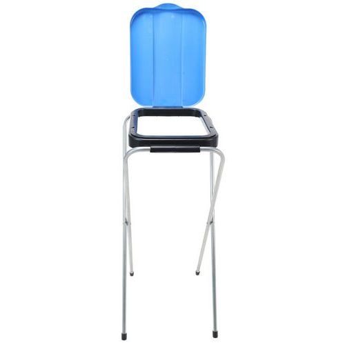Bag holder with folding metal frame and plastic lid. Layout according to your needs. Convenient in all environments, no matter what the event is or what your premises are like. Compact and robust, this bin bag holder is the economical solution to collect as much waste as possible in your workplace. Made of metal tubes, this model combines strength and stability.