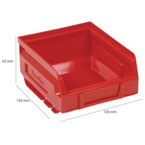 The interlocking edges give you stability when stacking the bins. Ribbed sides make the bins very robust. The flat base is non-slip for easy grip. The front opening makes the bin easy to pick up and allows access to the contents even when stacked. The polyethene plastic construction is very resistant to damage. Features a label holder for easy identification. 3-year guarantee. Label holder for easy identification. Made in the EU
