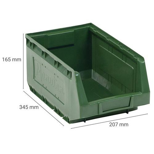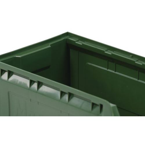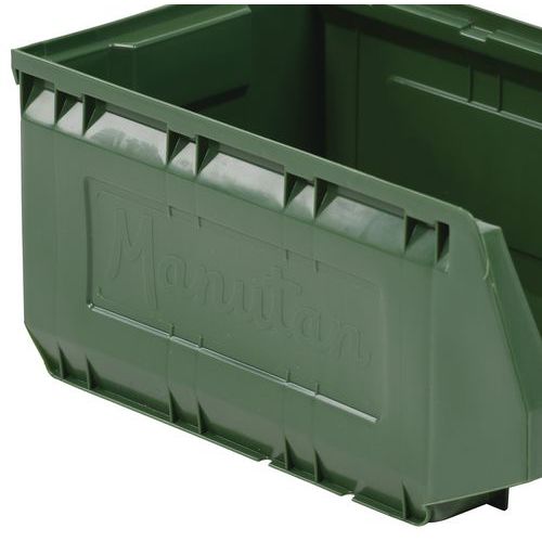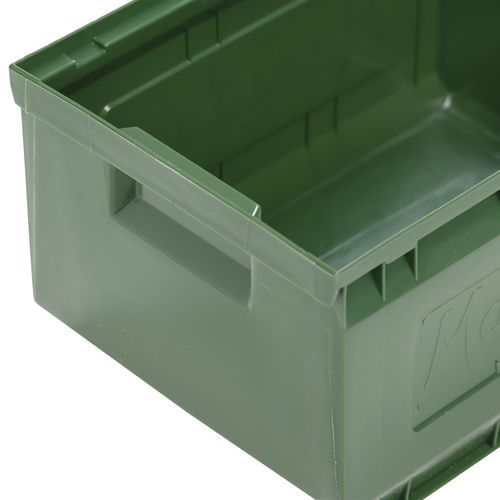 The interlocking edges give you stability when stacking the bins. Ribbed sides make the bins very robust. The flat base is non-slip for easy grip. The front opening makes the bin easy to pick up and allows access to the contents even when stacked. The polyethene plastic construction is very resistant to damage. Features a label holder for easy identification. 3-year guarantee. Label holder for easy identification. Made in the EU