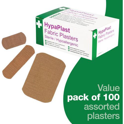 100 Heavy Duty Fabric Band-Aid/Plasters - Safety First Aid HypaPlasts