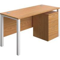 1400x600 Office Desk - 3-Drawer High Mobile Pedestal & Goal Post Legs