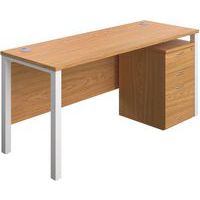 1600x600 Office Desk - 3-Drawer High Mobile Pedestal & Goal Post Legs