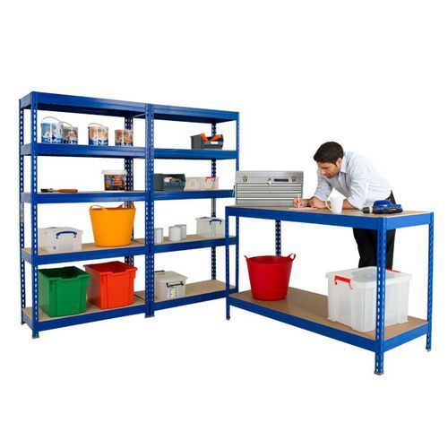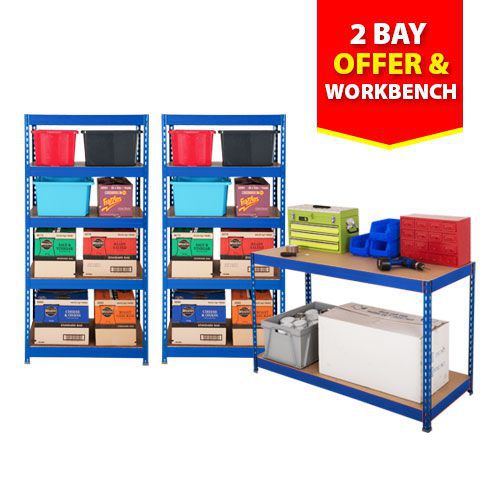 - This offer includes 2 bays of Blue Budget Shelving