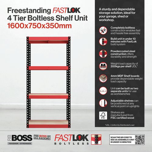 The completely boltless Fastlok design is ideal for fast and hassle-free assembly - this freestanding shelving unit can be assembled in under 10 minutes.
