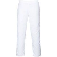 Hard-wearing, functional white work trousers with elasticated waistband. Hard-wearing twill fabric with excellent colourfastness. Elasticated waistband for added comfort.