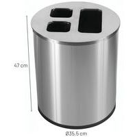 Bin with 3 removable compartments: 20 l + 10 l + 10 l (for the 40-l model) and 30 l + 15 l + 15 l (for the 60-l model).