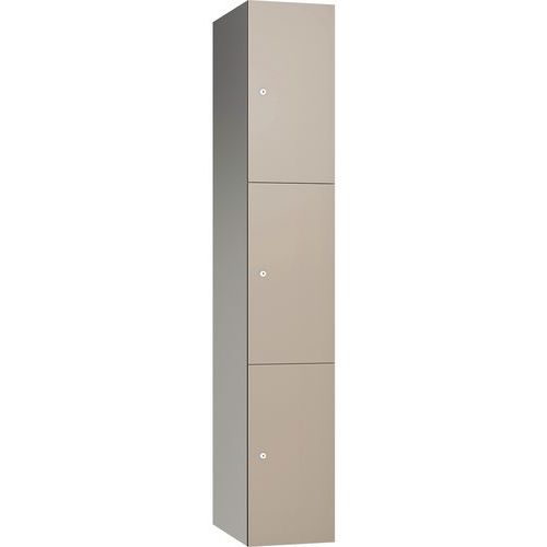 - 3-door aluminium locker with 12mm solid grade laminate doors.