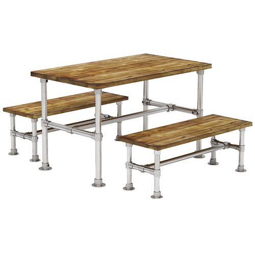 - Featuring 1 rectangular scaffold tabe and two scaffold bench seats.