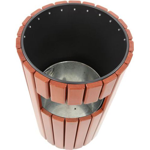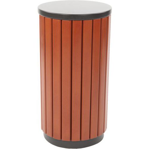 | Product Name | 33L Outdoor Round Wood-Slat Steel Waste Bin with Liner, Capacity: 33 L, Opening: Without lid, Material: Steel |