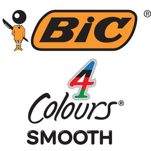 - The retractable and refillable BIC 4 Colours Smooth ballpoint pen offers the smoothest BIC 4 Colours writing experience yet. - The popular BIC 4 Colours ballpoint pen now features 40% smoother ink* compared to the original BIC 4 Colours. - This iconic model is now available with a stylish gradient high-shine finish. - Change colour without changing pens. The BIC 4 Colours Smooth pen comes in four classic colours: blue, black, red and green. The pink pen writes in blue, black, red and purple instead of green.
