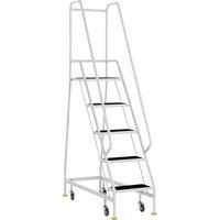 5-Tread Narrow Mobile Step Unit With Guardrails & Ribbed Rubber Steps