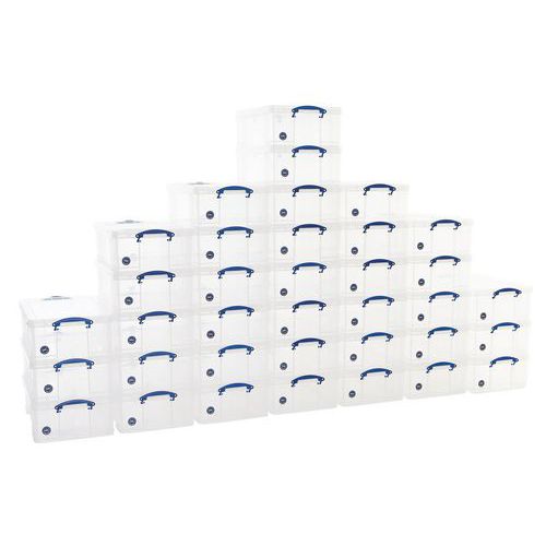 | Product Name | 50 L Clear Really Useful Box Pallet Buy of 40, Capacity: 50 L, O/A height: 230 mm, O/A width: 440 mm |