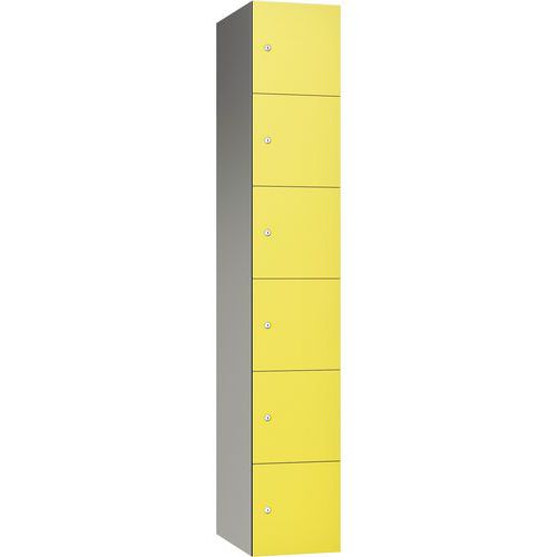 - 6-door aluminium locker with 12mm solid grade laminate doors.