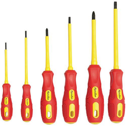 - Insulated electrician screwdrivers.Non-slip covered handle for effective use.All Manutan products are tested and approved by our teams.