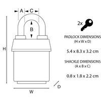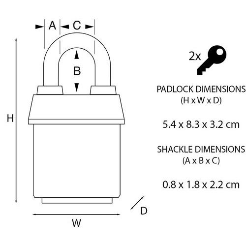 - ProSeries 54 mm-wide hardened laminated steel keyed padlock for superior resistance to physical attacks.