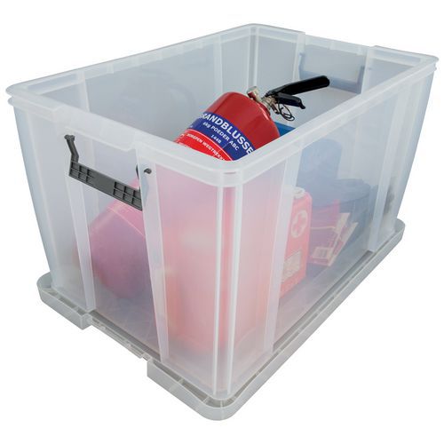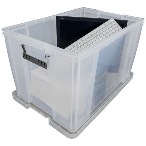| Product Name | 85 Litre Clear Plastic Storage Boxes, Capacity: 85 L, Nestable: yes, O/A height: 390 mm, O/A width: 440 mm |