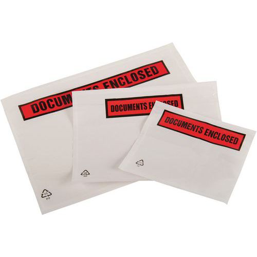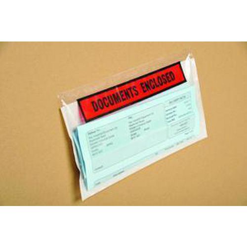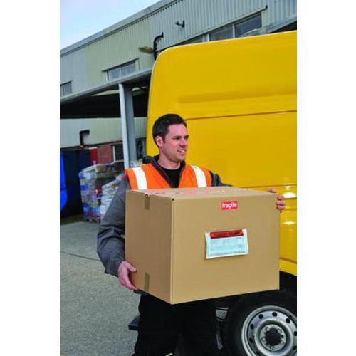 - Quick and easy to use: 1. Place documents inside. 2. Remove backing paper to expose adhesive. 3. Position and press onto the package..