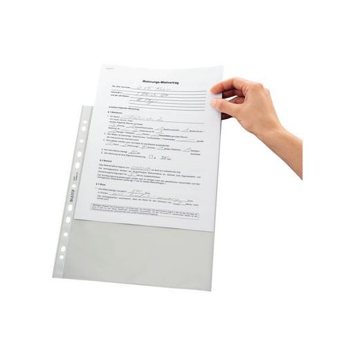 | Product Name | A4 punched pocket, smooth transparent polypropylene, 75 µ, Leitz, Colour: Clear |