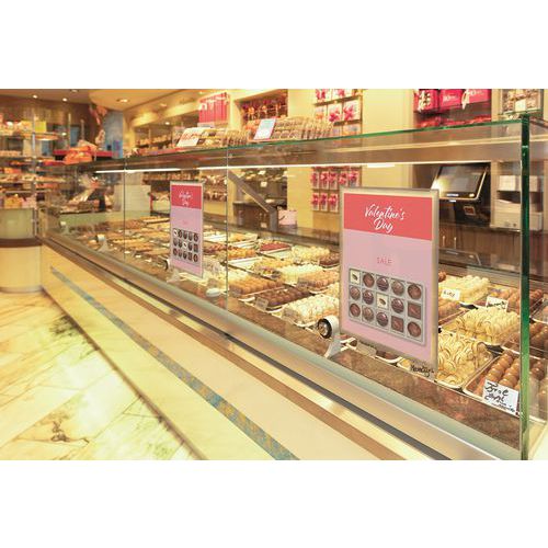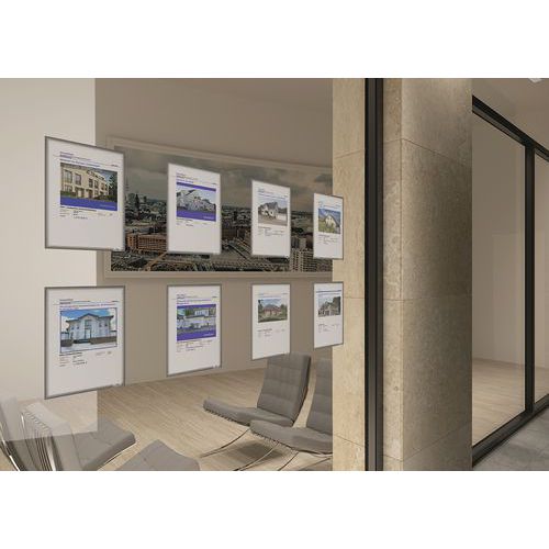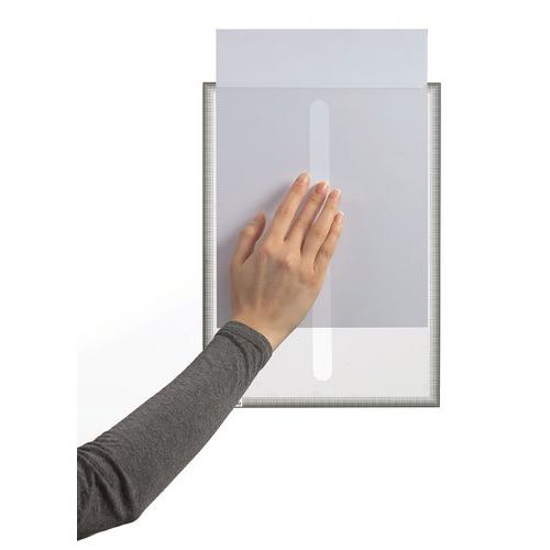 A4 display pockets with static-cling fixing, no adhesive needed.