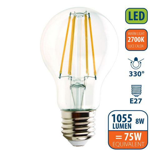 A60 8-W E27 cap standard LED filament bulb - VELAMP