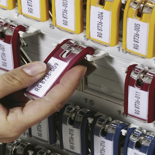 - Key clip labels can labels can be quickly and easily replaced without needing to remove the key ring.