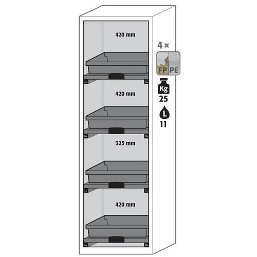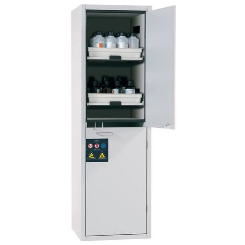 - Two compartments allowing the separate storage of acids and bases in the same cabinet.