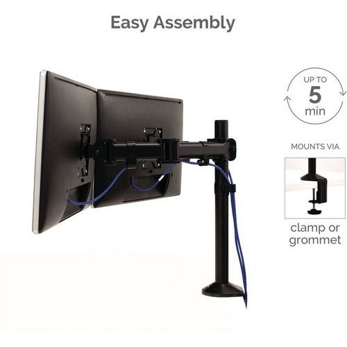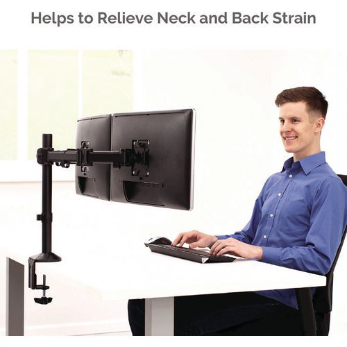 | Product Name | Adjustable 27 Dual Monitor Arm, Max. load: 8 kg, Colour: Black, Min. height: 58 mm, Max. height: 416 mm |