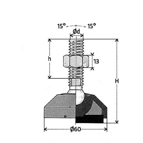 | Product Name | Adjustable polyamide foot, Rod material: Steel, Rod length: 54 mm, Foot height: 100 mm, Threaded rod Ø: M16 |