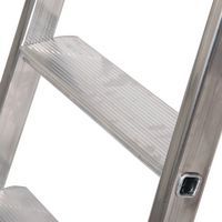Aluminium and professional ladder with deep serrated treads, ideal for heavy-duty work.
