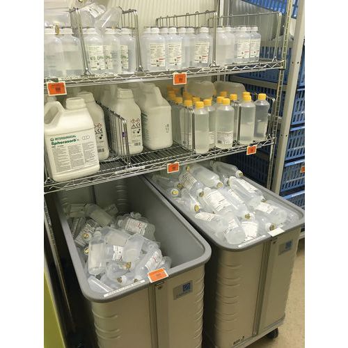 - Trolley with a vertically movable base so that products can always be accessed from the same height.