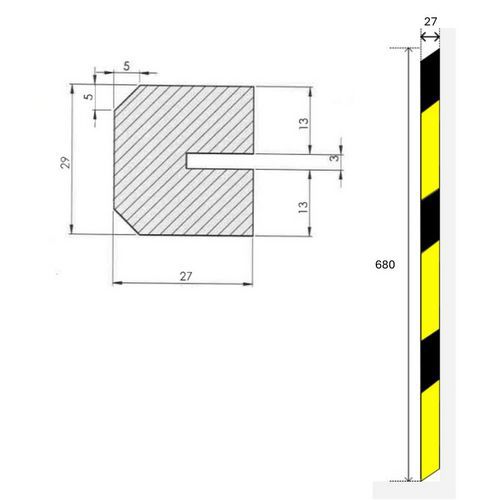 | Product Name | Amortiflex ® shock absorber for edges, Material: Polyethylene, Length: 680 mm, Colour: Black/yellow |
