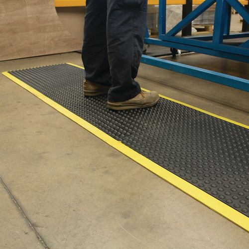 Bright yellow safety border is eye-catching and promotes workplace safety.