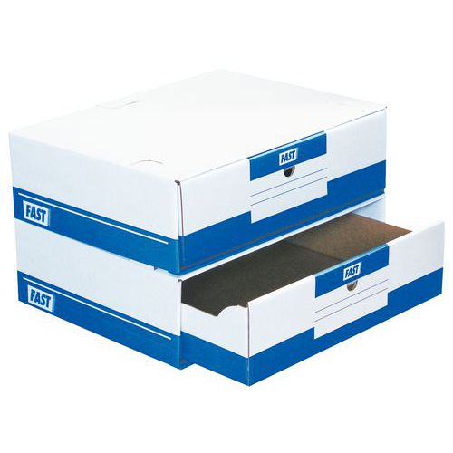 | Product Name | Archive box with drawer, Material: Cardboard, Colour: Blue, O/A length: 28 cm, O/A height: 14 cm |