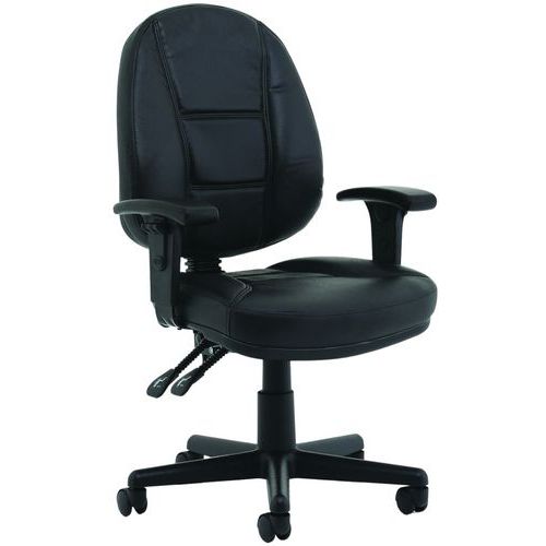 Suitable for sitting on for eight hours per day and five days per week use. Comes complete with height-adjustable arms. Meets BS7176 medium hazard standard. Adjustable seat height. Height adjustable backrest. The 5-star base with castors allows the chair to easily move to where it is needed. Perfect for use in both the office and home working environments.