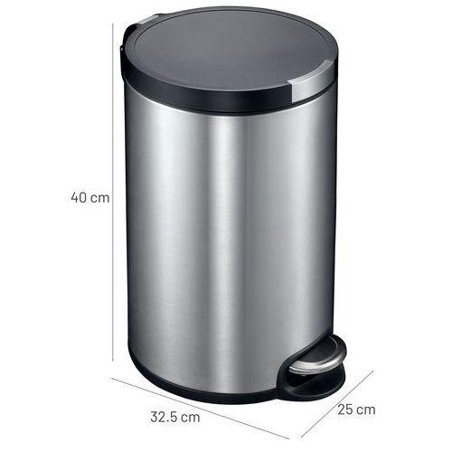 Generous capacity from 12 to 30 litres, ideal for the kitchen or office. Silent close lid for discreet everyday use. Robust pedal with a stainless steel finish for easy, hygienic opening. Removable plastic inner container for easy cleaning and bag replacement. Round, modern design blends into any type of interior.