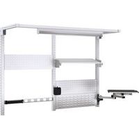 Adding a frame to the back of your workbench increases stability and offers great storage solutions. Promotes an ergonomic working environment, with many lean management benefits. This kit is easy to assemble and contains a selection of the most popular Bott storage solutions. Perfo panelling allows the quick and easy attachment of a vast range of accessories, such as hooks or tool holders. Attaching a Perfo panel to a workbench strengthens its stability, while allowing tools to be stored within easy reach. Sheet steel shelving allows extra storage to be added to your workbench. Overhead LED lighting aids efficiency, and the support frame strengthens your workbench frame. Supplied with a 3 metre cable and plug.