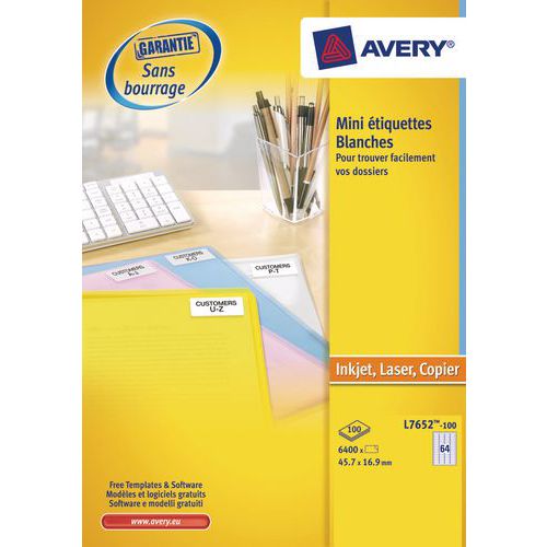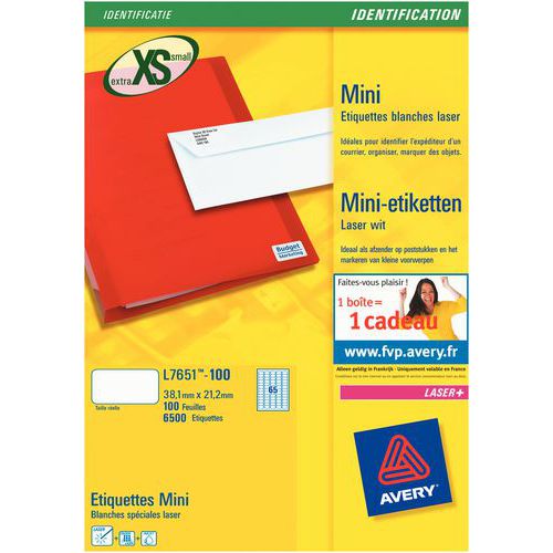 Personalise and print your labels free of charge at www.avery.fr Avery® purchase rewards: 1 free gift for every box of labels purchased (see their site for conditions).