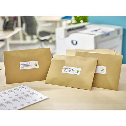 Labels made from recycled chlorine-free bleached paper and easy to peel from their backing. Compatible with all brands of laser printer. Rounded corners.