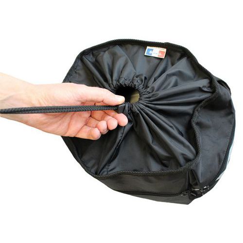 Practical, with a separate space for each item of PPE: centre pocket for a helmet, side pockets and front pocket for gloves etc.
