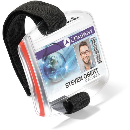 | Product Name | Badge-holder armband, Colour: Clear, Type of fixing: Hook and loop fastening, Length: 86 mm, Width: 54 mm |