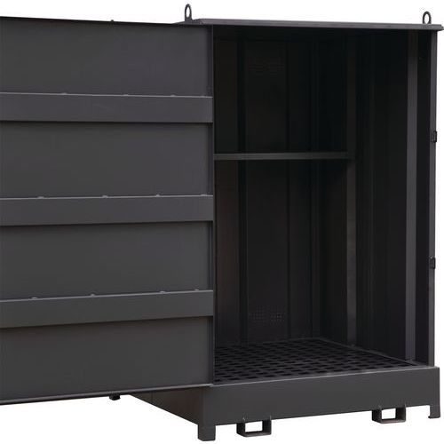 Robust design with heavy-duty doors and a 5-lever deadlock. Fully compliant with COSHH regulations for hazardous materials. Wide-opening doors and lift-up lid for easy access. Integrated spill pallet with large sump capacity. Fork skids for easy manoeuvrability. Raised removable floor for convenient cleaning and maintenance. Fits 2 to 4 205-litre drums. Customer warranty : 1 year