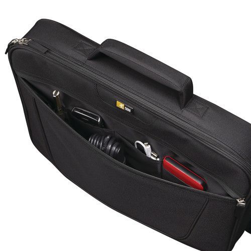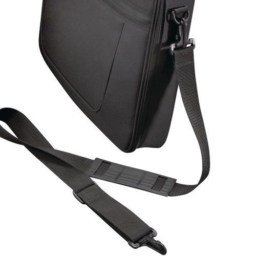 Bespoke case for 15.6 or 17 laptops. Padded computer compartment with adjustable safety shoulder strap. Document holder, front panel for accessories and mains chargers. Padded, neoprene-lined handles, removable strap and non-slip shoulder pad. Clamshell design allows the case to fully open.