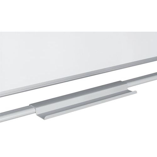Double-sided enamelled board vitrified at 800°C. One non-magnetic dry-wipe side. One magnetic side coated with premium ceramic or steel. Practical double-sided design. Board rotates 36 ° on its horizontal axis. Mobile base with four braking castors. Surface guaranteed 25 years for normal use. With repositionable metal pen rest.