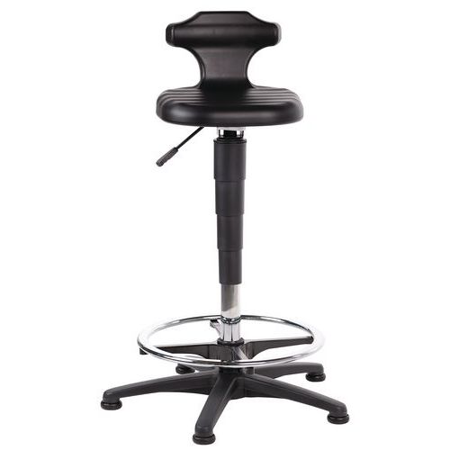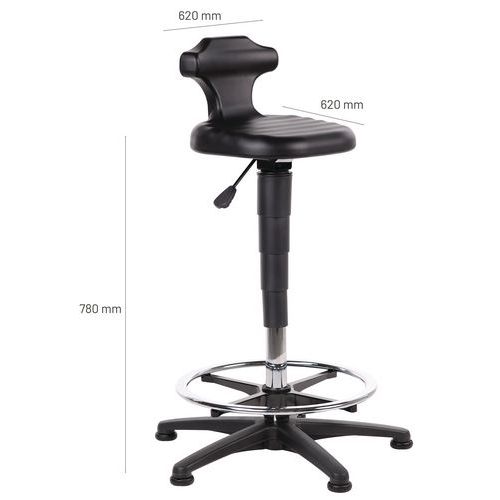 | Product Name | Bimos sit/stand stool, Type of leg: Pads, Seating material: Polyurethane, Seat model: High, Foot rest: yes |