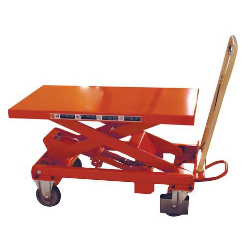 - Easy to handle lift table, fitted with wheels with low resistance to facilitate start-up.