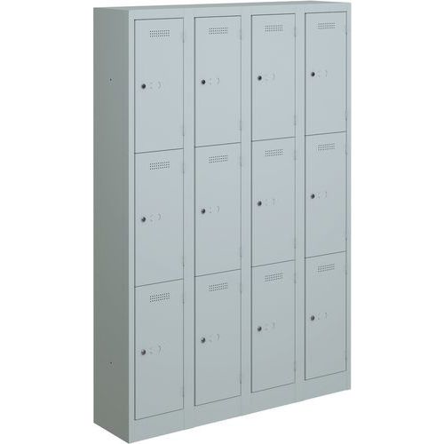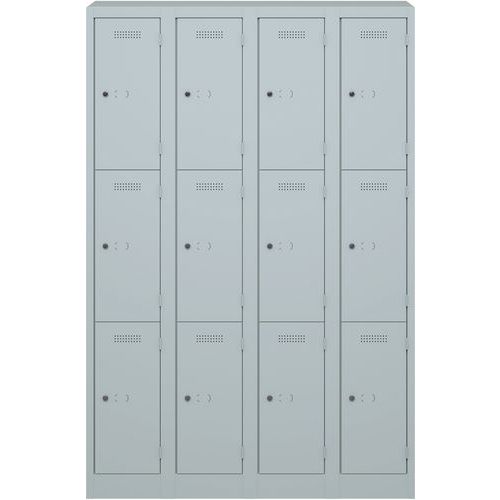 Designed for durability and aim to fulfil tough ‘back of house’ storage needs. Ventilated doors allow air to flow through the lockers to help stop dampness from building up. There are discreet label holders on all doors. The strong hinges can withstand rough handling. The metal casing is finished in a smart grey colour. Delivered assembled and ready to use. Five-year warranty.