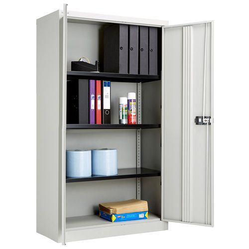 1806mm office cupboard supplied complete with dual purpose shelves.