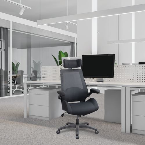 | Product Name | Black Executive Mesh Chair, With armrest: yes, Type of leg: Rollers, Seating material: Fabric, Headrest: yes |