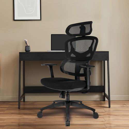 Black High Back Mesh Executive Office Chair, With armrest: yes, Type of leg: Rollers