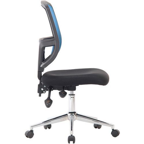 This deluxe task/operator chair has a medium-sized, ergonomic mesh back
